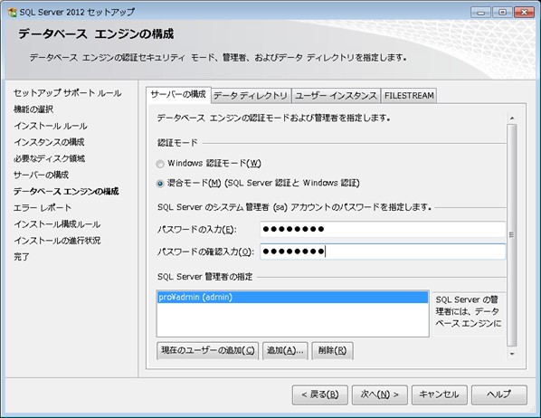 まず、SQL Server 2012 Express を Microsoft の ダウンロードのページから、OSが64bitの場合は、JPN\x64\SQLEXPR_x64_JPN.exe を、OSが32bitの場合は、JPN\x86\SQLEXPR32_x86_JPN.exe をダウンロードします。今回のケースでは、SQL Server の設定に必要な SQL Server 2012 Management Studio Express (SSMSE) は、管理用のPCにインストールしたものを利用することとします。