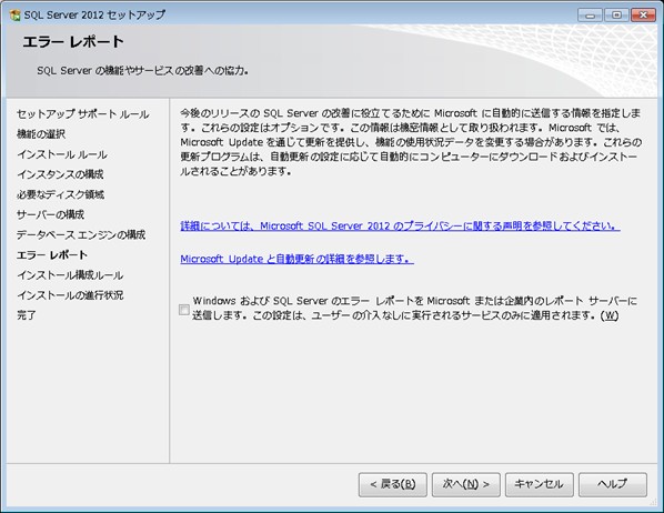 エラーリポートが表示されます。「次へ」をクリックすると、インストールが始まります。