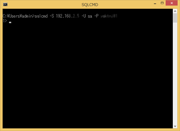 また、SQLCMD を利用して接続テストができます。下の図のように TCP/IP 接続が有効になっている場合は、以下のコマンドで SQL Server Express に接続することができます。