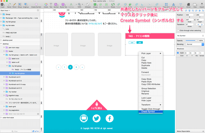 Webデザイン制作は「デザインパーツを共通化(シンボル化)する」ことで作業の効率化をします。