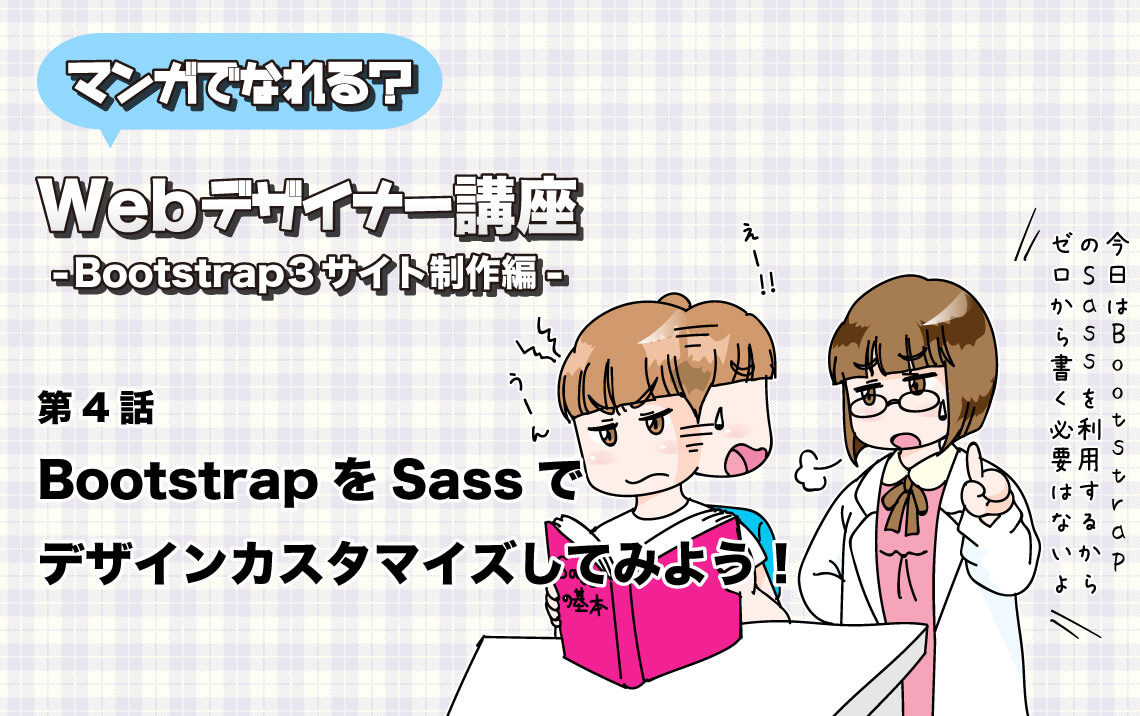 3話で紹介したBootstrapをカスタマイズする方法の1つ「3.LESS/Sassファイルを直接変更、オリジナルスタイルを追加する」方法を説明したいと思います。
